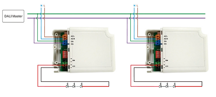 • Na regulação DALI o driver regula-se de forma digital através de um software especifico que transmite as ordens a um controlador DALI e, este ultimo, transmite-as pelo protocolo DALI a luminárias, persianas, portas, etc.