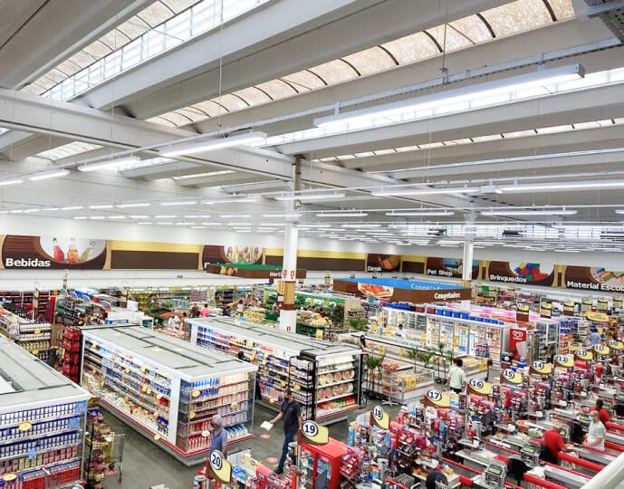 Temos vasto conhecimento em projetos luminotécnicos para supermercados e atacados, oferecendo sistemas que se adequam melhor a cada estrutura e potencializam o aproveitamento da luz. Os projetos contam com linhas especiais de LED, que variam na temperatura para realçar as cores e texturas naturais de diferentes produtos. Clique e saiba mais!